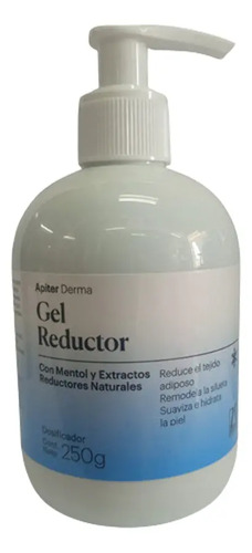 Gel Reductor con Complejo Reductor y Mentol. Ayuda a reducir el tejido adiposo Remodela la silueta Suaviza e hidrata la piel El gel está integrado por los extractos vegetales de Centella Asiática, Hiedra, Fucus, Abedul, Viña Roja y Melilotus. Esta combinación de extractos logra una efectiva reducción del tejido adiposo, ejerce acción vasoconstrictora y estimulante. Suaviza e hidrata la piel. La presencia del Mentol logra una placentera sensación refrescante y descongestiva.