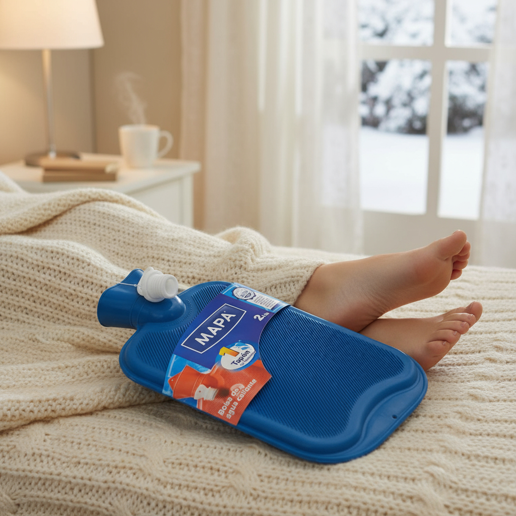 La Bolsa de Agua Caliente Mapa Pirelli en color azul es la solución ideal para quienes buscan confort y bienestar en los días fríos. Con una capacidad de 2 litros, esta bolsa es perfecta para aliviar dolores musculares, calentar la cama o simplemente disfrutar de un momento de relajación. Su diseño práctico y funcional incluye un tapón que asegura un cierre hermético, evitando cualquier tipo de derrame.