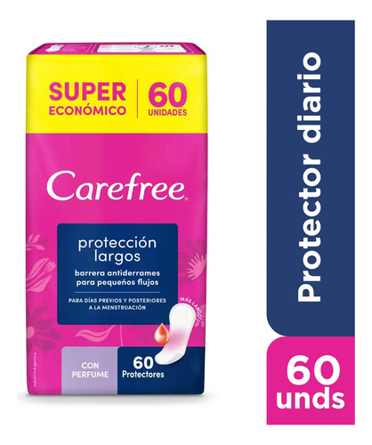 Disfruta de la comodidad y seguridad que te brinda Carefree Prot Diario Largos X 60. Estos protectores diarios de la reconocida marca Carefree están diseñados para adaptarse a tus necesidades y brindarte la protección que necesitas durante todo el día. Con 60 unidades por envase, tendrás suficiente cantidad para sentirte fresca y protegida en todo momento.