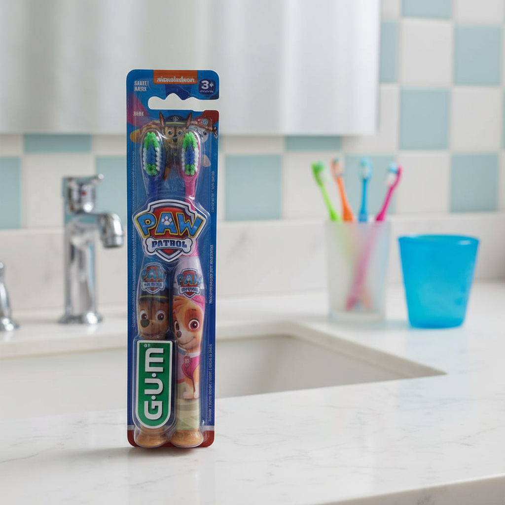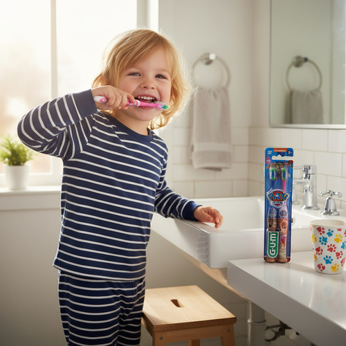 El cepillo de dientes infantil Paw Patrol de la marca Gum es la elección perfecta para hacer que la hora de cepillarse los dientes sea divertida y emocionante para los más pequeños. Con un diseño atractivo inspirado en los personajes de Paw Patrol, este cepillo no solo es visualmente atractivo, sino que también está diseñado para adaptarse a las manos de los niños, facilitando su uso.