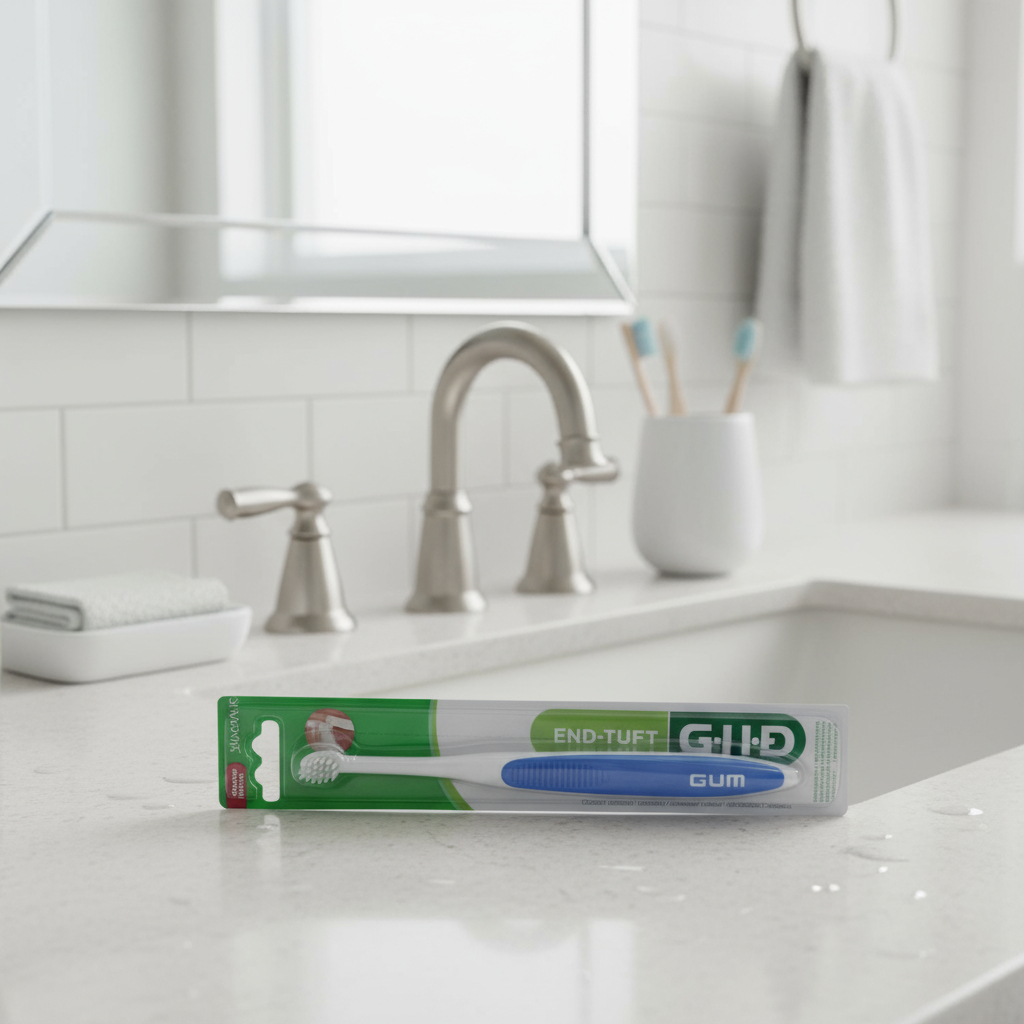 El cepillo dental GUM® Unipenacho está especialmente diseñado para asuntos de cuidado especial, como ortodoncia, implantes, furcaciones, distal del último molar y otras áreas de difícil acceso.