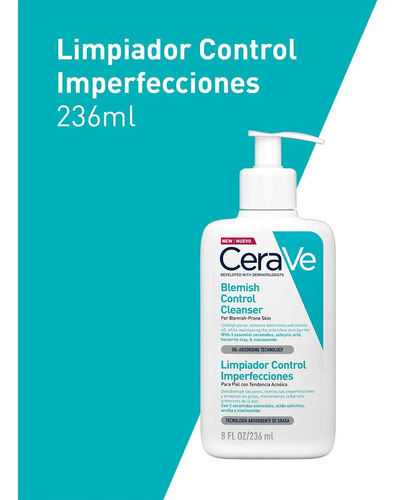 Cerave Limpiador Control Imperfecciones 236ml, Piel Grasa Momento De Aplicación Día/noche Acneica