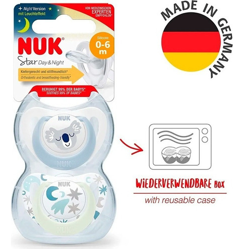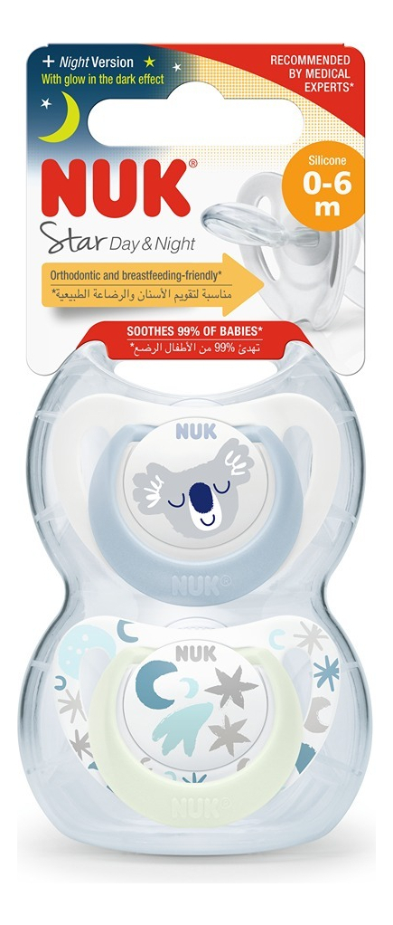 Chupete Nuk Silicona Star Dia & Noche Varon 0-6 Meses 2uni