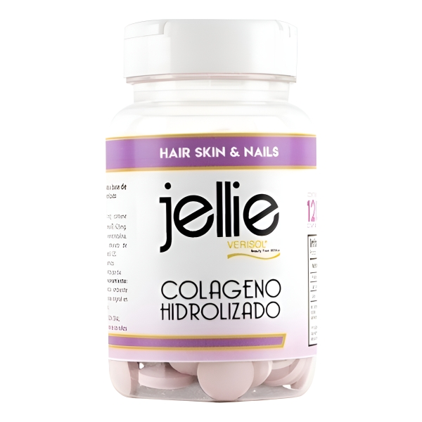 Colágeno Hidrolizado Jellie® X 120 Comp. es un suplemento alimenticio diseñado para el cuidado integral de la piel, el cabello y las uñas. Este producto sin sabor está formulado para ser fácilmente incorporado en tu dieta diaria.