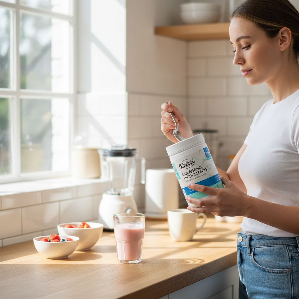 Fortalece las articulaciones, las uñas y el cabello. Al actuar como lubricante para cartílagos y ligamentos, genera un efecto protector ante determinadas fuerzas mecánicas. Ayuda a recuperar la elasticidad, disminuyendo el dolor y mejorando la movilidad de las articulaciones. El colágeno es una proteína que ayuda a mantener el buen estado de los músculos, tendones, ligamentos, piel, huesos y cartílagos.