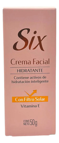 La crema facial Six brinda una hidratación superior y duradera gracias a sus activos de doble tecnología de acción. Su textura ligera y de fácil aplicación hace que sea un placer usarla. La combinación de vitamina E con emolientes de fácil absorción contribuye a prevenir los signos de envejecimiento prematuro, reforzando la barrera natural de la piel. Incluye filtro de protección UV. Este producto es cruelty free, no es testeado en animales y no contiene parabenos. Además, es rico en vitamina E y es vegano.