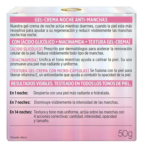 El Ácido Glicólico favorece la renovación celular para ayudar a reducir las manchas mientras uniformiza textura y nono de piel.