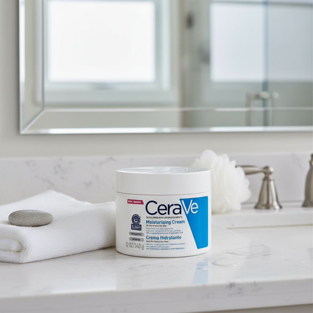 Crema Cerave 340 gr hidratante para manos y cuerpo, con ácido hialuronico que ayuda a retener la hidratación natural de la piel . Sin perfume.
