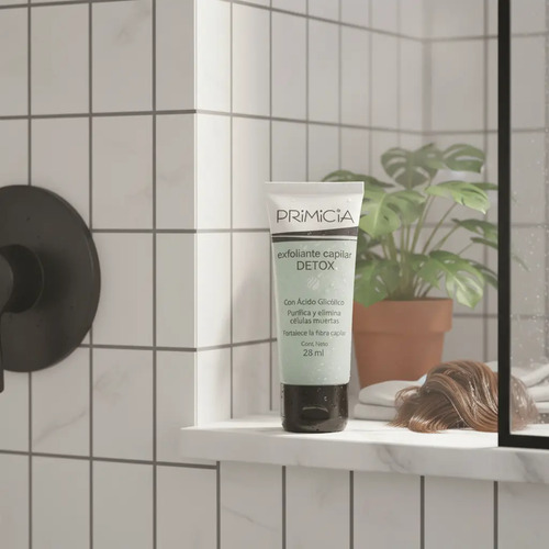 El Exfoliante Capilar Primicia de 28 ml es la solución ideal para quienes buscan restaurar la salud de su cabello dañado y quebradizo. Formulado con una línea detox, este exfoliante en gel actúa profundamente en el cuero cabelludo, eliminando impurezas y residuos acumulados, lo que permite que el cabello respire y se revitalice.