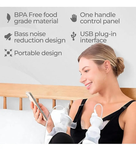 El extractor de leche doble es un sistema cerrado que evita que la leche fluya hacia atrás para que la leche no se contamine y las madres pueden elegir una postura cómoda.