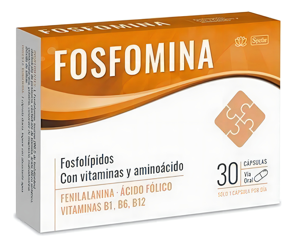 Fosfomina® 30 Caps es un suplemento nutricional de alta calidad de la reconocida marca Spefar. Este producto está diseñado para proporcionar a tu cuerpo una dosis diaria de fosfolípidos, vitaminas y aminoácidos esenciales. Cada cápsula es una fuente rica de Fenilalanina, Ácido fólico y Vitaminas B1, B6, B12, ingredientes que contribuyen a mejorar la salud y el bienestar general.