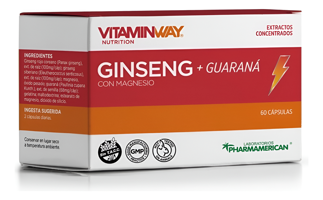 Ginseng + Guaraná de Vitaminway ayuda a incrementar energía y vitalidad.