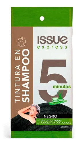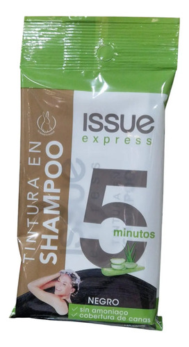 Descubre la solución perfecta para un cambio de look rápido y efectivo con la Tinta Issue En Shampoo 5 Minutos Negro. Esta innovadora tintura en formato shampoo está diseñada para proporcionar una cobertura completa de canas en tan solo 5 minutos, sin necesidad de amoníaco. Ideal para quienes buscan un color intenso y duradero con la máxima comodidad y rapidez.