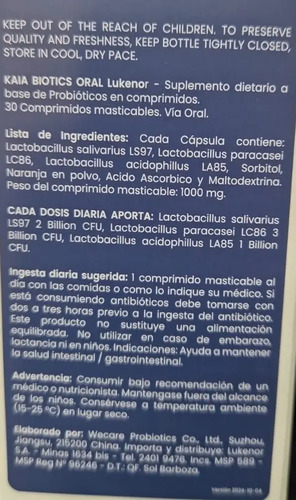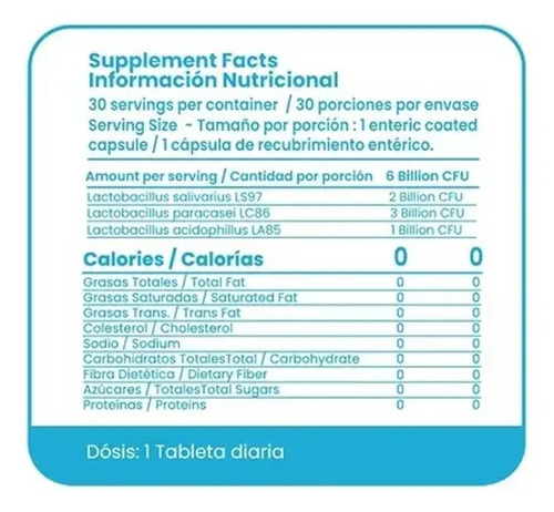 Lactobacillus paracasei LC86: Inhibe microorganismos causantes de caries y gingivitis.