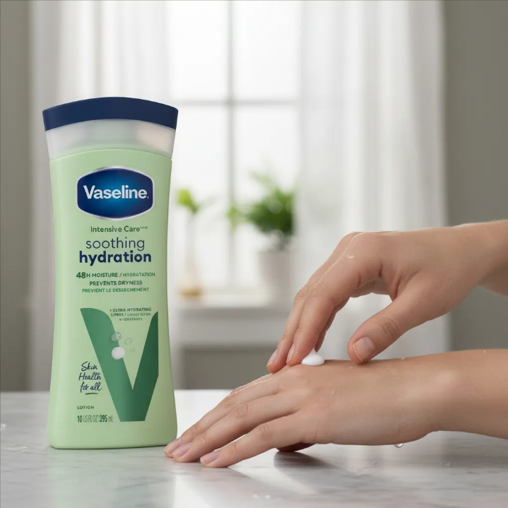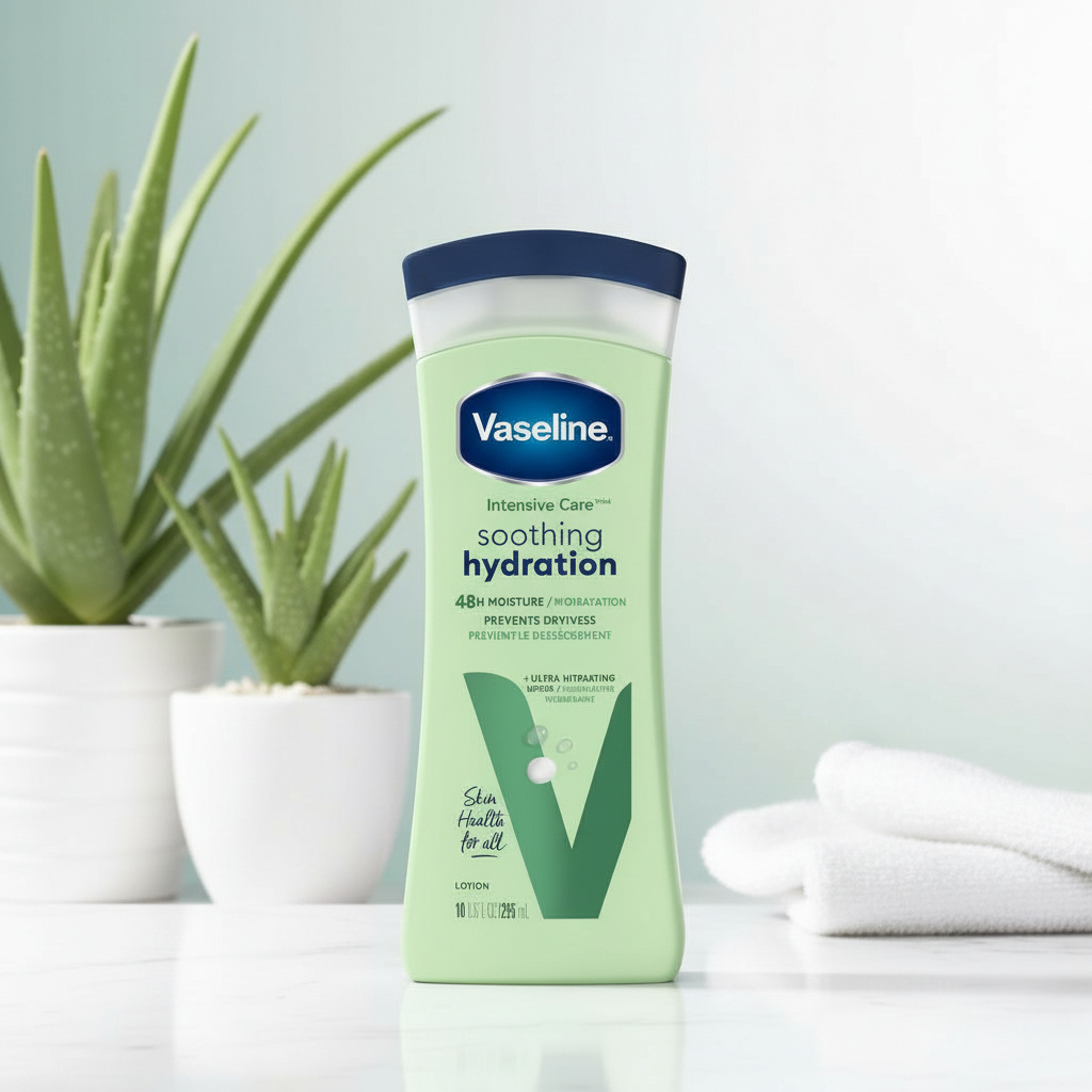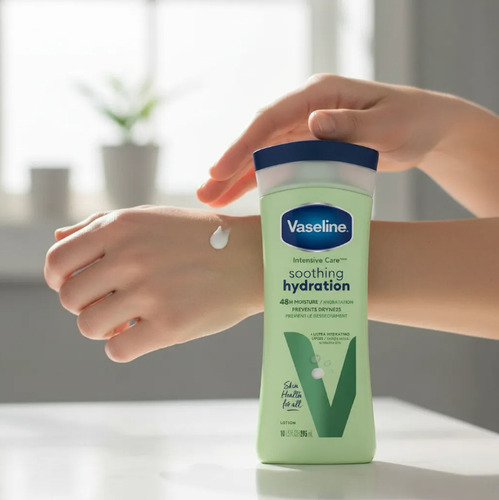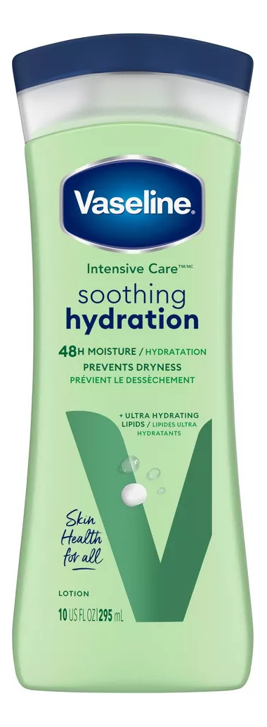 La Loción Vaseline Soothing Hydration de 298ml es una crema hidratante que proporciona una sensación calmante y alivio inmediato para la piel seca. Enriquecida con ingredientes humectantes, esta loción se absorbe rápidamente sin dejar una sensación grasosa, ofreciendo una hidratación profunda y duradera. Es adecuada para el uso diario y ayuda a mantener la piel suave y tersa.