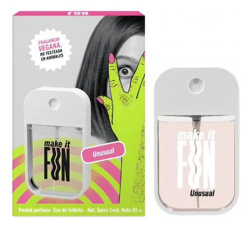 El perfume Make It Fun Unusual Edt 45 Ml Femme es una fragancia vibrante, diseñada para aquellos que celebran cada instante y buscan empoderarse para aprovechar cada oportunidad. Su nombre, Unusual, refleja su esencia única y distintiva. Este perfume no es solo una fragancia, es una declaración de intenciones, un llamado a lo extraordinario. Con un volumen de 45 ml, es el tamaño perfecto para llevarlo contigo a donde quiera que vayas, permitiéndote refrescar tu aroma en cualquier momento. Tan penetrante que encierra experiencias únicas y auténticos encuentros, creado con ingredientes deslumbrantes. Cada gota de este perfume es una invitación a lo inusual, a lo extraordinario. Su aroma es una mezcla de notas que capturan la esencia de la aventura y la emoción, envolviéndote en un aura de misterio y encanto. Unusual es más que un perfume, es una experiencia sensorial que te lleva a un viaje de descubrimiento personal. Es un recordatorio constante de que cada momento es una oportunidad para hacer algo inusual y extraordinario.