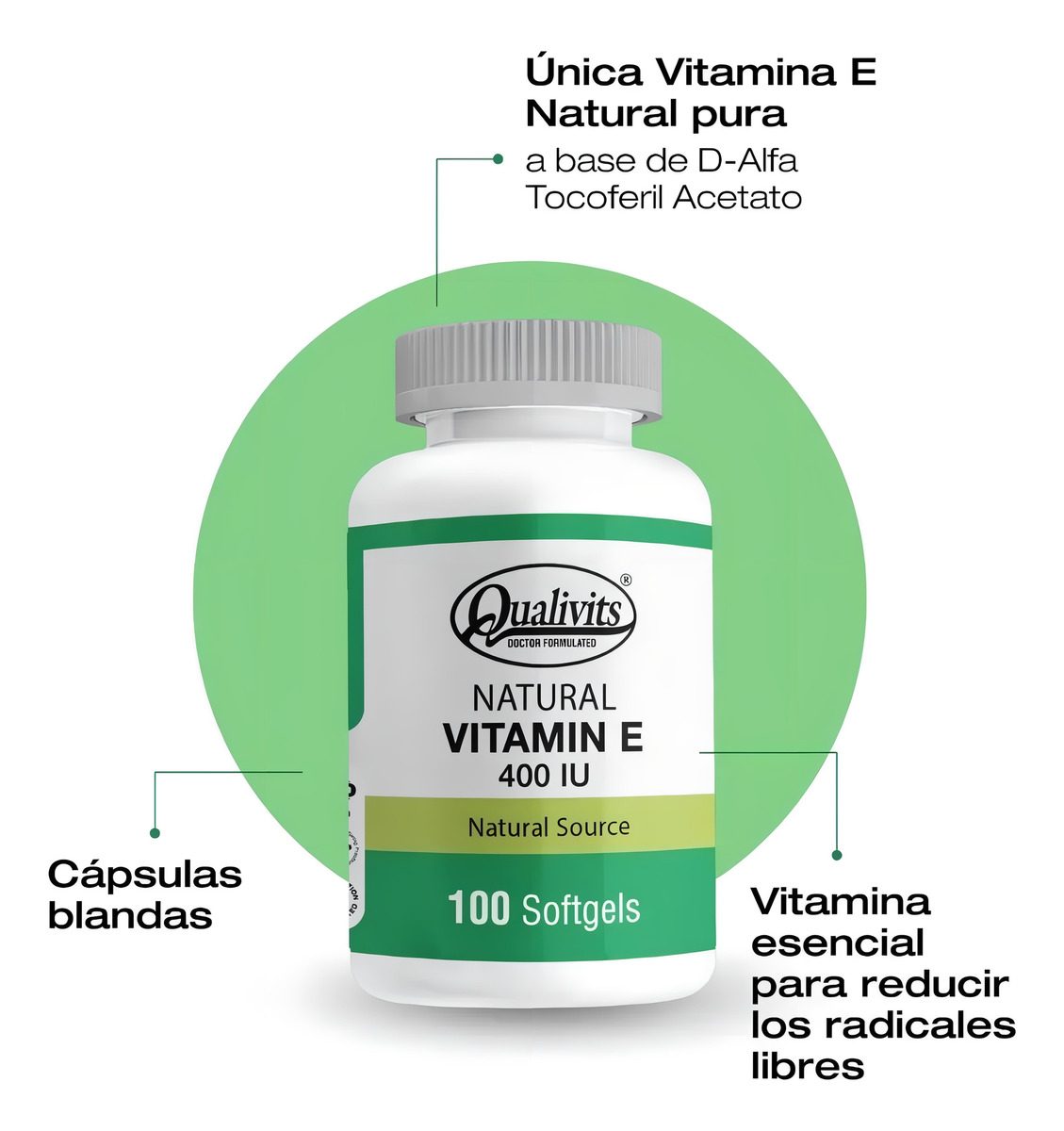 Natural Vitamina E Qualivits 400 Ui X 100 Cápsulas Blandas Sabor Natural