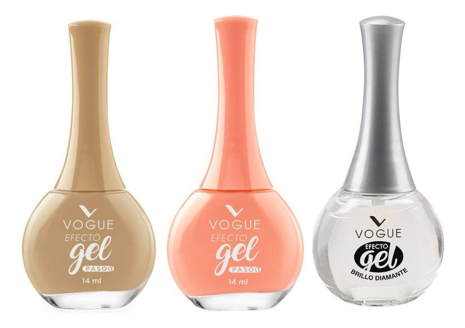 Título manual | Pack Vogue Efecto Gel Esmalte Jaguar + Flamingo + Brillo |