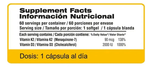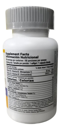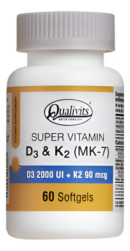 La Vitamina D3 y K2 MK-7 de Qualivits es un complemento esencial que apoya el bienestar nutricional diario. Con 2000 UI de Vitamina D3 y 90 mcg de Vitamina K2 MK-7 por porción, este suplemento está formulado para promover la salud ósea y cardiovascular. La combinación de estas vitaminas favorece la absorción de calcio en los huesos, contribuyendo a un esqueleto más fuerte y saludable.