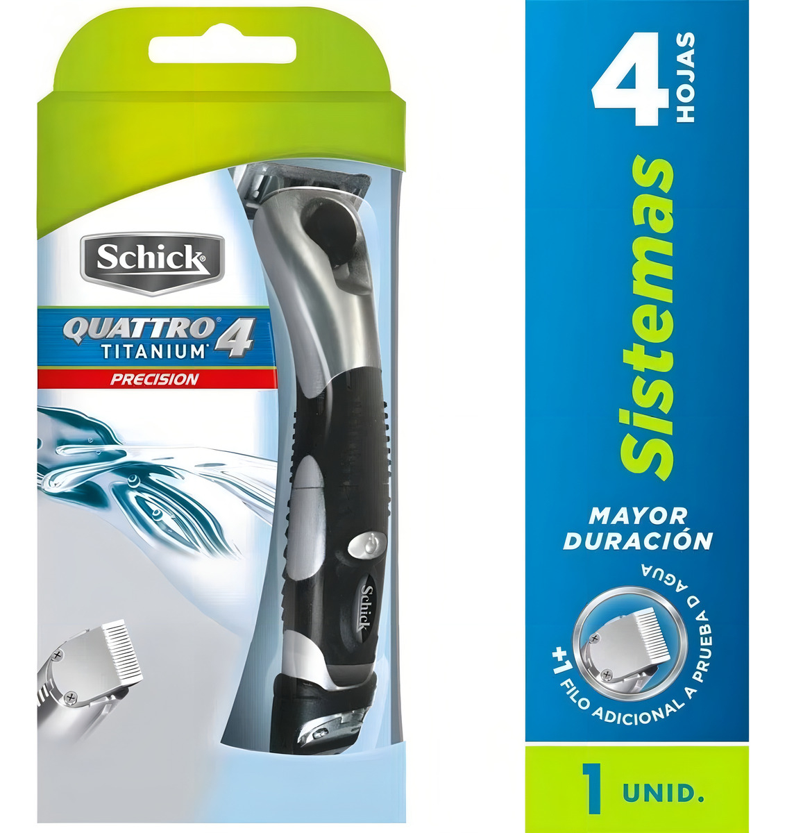 La Schick Quattro Titanium redefine la experiencia de afeitado con su avanzada tecnología de 4 hojas más una hoja adicional de extra precisión, ideal para contornos y detalles finos. Cada hoja está fortalecida con titanio y diamante, garantizando un corte excepcional mientras protege tu piel. Las bandas lubricantes enriquecidas con aloe ofrecen un deslizamiento suave, minimizando la irritación. Este modelo plateado incluye un accesorio nivelador y un peine, ampliando sus funciones a delineador, rastrillo y rasuradora. A pesar de no ser recargable, su diseño inalámbrico y su aptitud para viajes la hacen perfecta para el hombre moderno en movimiento. Con cuatro posiciones ajustables, la Schick Quattro Titanium 4 se adapta a tus necesidades de afeitado, proporcionando resultados precisos y uniformes cada vez.