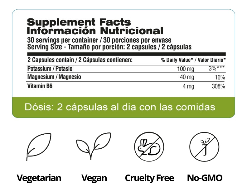 Incorporar este suplemento en su dieta puede ayudar a contrarrestar algunos de los efectos perjudiciales del sodio sobre la presión arterial. Se presenta en un frasco de 60 cápsulas con un sabor natural agradable.