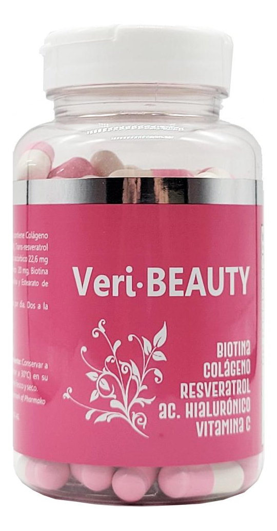 Veri Beauty, 120 Cápsulas, biotina, colágeno, resveratrol, ácido hialurónico, vitamina C. Suplemento fortalecedor de faneras. Asociaciones de vitaminas y minerales para fortalecimiento de cabellos y uñas.