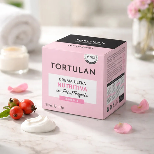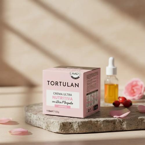 El aceite de Rosa Mosqueta, se incorpora a la crema Ultra Nutritiva Tortulan® para proporcionar acciones emolientes y anti-irritantes, actuando frente a factores agresivos como el viento, frío en invierno y los dañinos rayos ultravioletas del verano. Sus principios activos son sustancias astringentes, taninos específicos, precursores de Vitamina A como regeneradores de la piel y un alto contenido de triglicéridos esenciales, conocidos como Vitamina F, cuya ausencia provoca envejecimiento acelerado y su presencia, reconstitución de los tejidos celulares dañados.