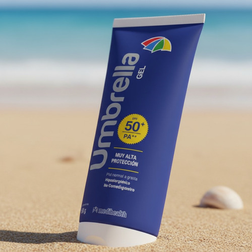 Umbrella Gel Protector Solar Fps 50, de la marca Medihealth, es el aliado perfecto para cuidar tu piel del daño solar. Su fórmula en gel ligero, apta para todo tipo de piel, ofrece una protección de amplio espectro con un factor de protección solar de 50, ideal para quienes buscan una defensa eficaz contra los rayos UVA y UVB. Este protector solar es dermatológicamente testeado, comedogénico y libre de fragancias, asegurando que incluso las pieles más sensibles puedan disfrutar de una protección confiable sin irritaciones.