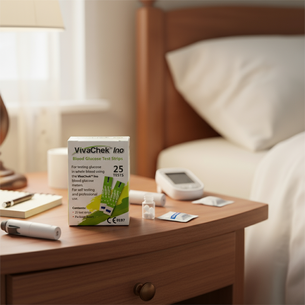 Vivachek INO, Tiras reactivas para medición de glucemia, por lectura directa o a través de equipos de glucometría. Indicadas en pacientes diabéticos que requieren mediciones periódicas, para autocontrol de la glucosa en sangre.