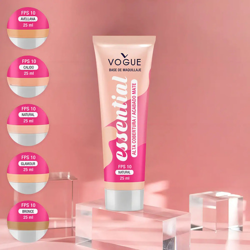 La base de maquillaje Vogue te ayudará a lucir un rostro impecable, cubriendo las imperfecciones y unificando el tono de tu piel.